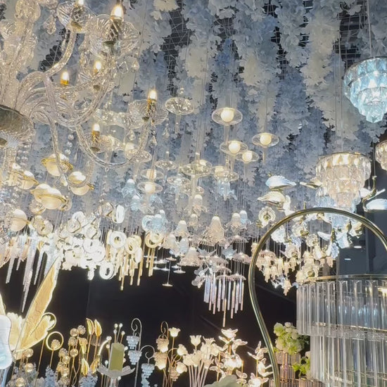 Elevate your interior design with the Artificial Flower Factory Decorative Floor Lamp. This grand, 8-point lighting fixture is designed to be a statement piece, blending architectural gold-tone metal rods with soft, glowing light points. Standing at an impressive 130 cm, it provides a dramatic multi-level illumination that adds depth and luxury to any modern living room, hotel lobby, or executive office.